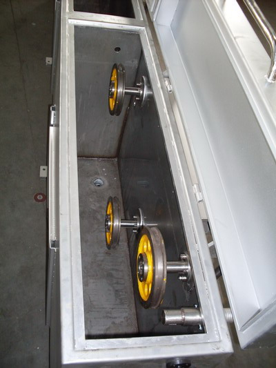 功能:焊丝通过旋转钢刷刷去焊丝表面附层,经四个不同方向八个悬浮抛光装置处理,使焊丝表面清洁、光亮。